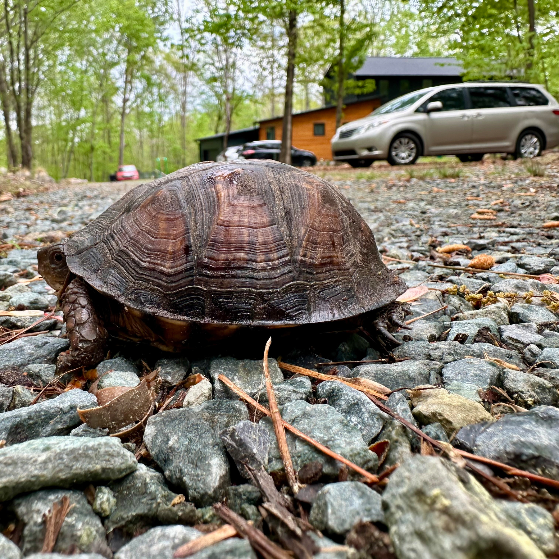 We missed the desert tortoises in southern Utah but now that spring is here in North Carolina we are on the lookout for box turtles. Oliver saw this one in the road as he, Erin, and Anna returned from Easter service.